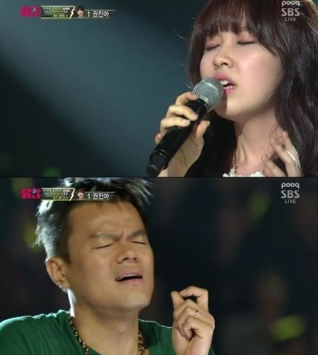 ▲권진아가 박진영 노래를 리메이크해 불렀고 이에 박진영은 극찬했다.(SBS방송캡처)