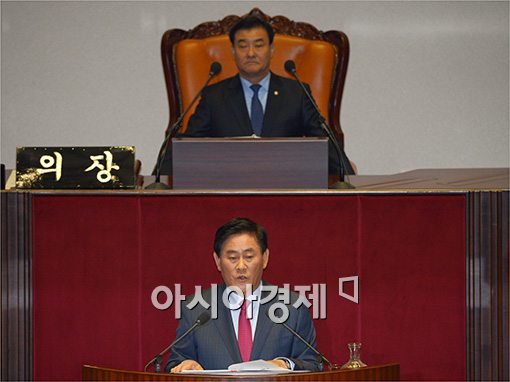[아시아경제 윤동주 기자] 최경환 새누리당 원내대표가 1일 서울 여의도 국회 본회의장에서 교섭단체 대표 연설을 하고 있다.윤동주 기자 doso7@asiae.co.kr<ⓒ세계를 보는 창 경제를 보는 눈, 아시아경제(www.asiae.co.kr) 무단전재 배포금지>
