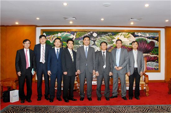 안민수 삼성화재 사장(오른쪽 네 번째)과 응이엡 베트남 재무부(MOF) 수석차관(오른쪽 세 번째)이 지난달 31일 양국간 보험산업 발전에 대한 협력 방안을 논의한 뒤 기념촬영을 하고 있다. 이날 안 사장은 베트남 국영재보험사 '비나리'와의 현지 합작법인 '삼성비나'에 대한 지속적인 관심과 지원도 요청했다.