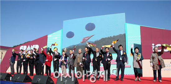 유기식품 제조 클러스터인 구례 자연드림파크의 그랜드 오픈식에서 참석자들이 퍼포먼스를 하고있다.