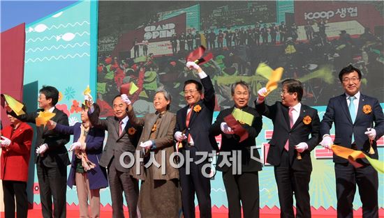 4일 오후 구례군 용방면에서 우리밀과 쌀을 원료로 하는 대규모 친환경 유기 가공식품 클러스터인 구례 '자연드림파크'가 개장했다. 개장식에는 신복수 아이쿱생협회장, 박준영 도지사, 서기동 구례군수, 우윤근ㆍ윤호중ㆍ유승민 국회의원, 아이쿱생협 회원, 지역주민 등이 참석했다. 사진제공=전남도