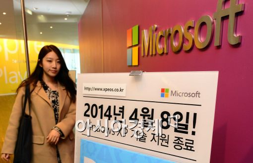 [아시아경제 최우창 기자]마이크로소프트의 컴퓨터 운영체제 윈도 XP기술지원 종료일인 8일 서울 종로구 한국마이크로소프트 본사 복도에 종료 시점을 알리는 팻말이 붙어 있다. 최우창 기자 smicer@asiae.co.kr<ⓒ세계를 보는 창 경제를 보는 눈, 아시아경제(www.asiae.co.kr) 무단전재 배포금지>