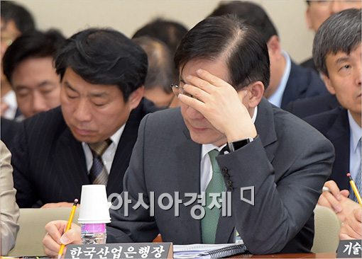 [아시아경제 윤동주 기자] 9일 서울 여의도 국회에서 열린 정무위원회 전체회의에 출석한 홍기택 산업은행장이 피곤한듯 머리를 감싸고 있다.윤동주 기자 doso7@asiae.co.kr<ⓒ세계를 보는 창 경제를 보는 눈, 아시아경제(www.asiae.co.kr) 무단전재 배포금지>