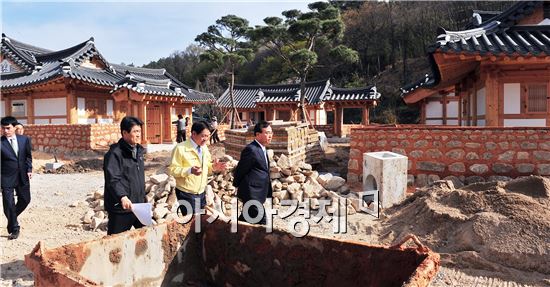 [아시아경제 김재길 기자]이강수 고창군수는 11일 마무리 중인 고창읍성 주변 문화체험거리 조성 현장을 둘러보며 공사 진행사항을 점검하고, 인근 주민 의견을 수렴했다.이 군수는 “고창읍성 주변은 과거 역사 문화의 도시 고창을 상징하면서, 고창읍의 핵심거리로서 관광고창을 부각시키는 중요한 곳이다”며 “고창문화의전당, 판소리박물관, 야외공연장, 중앙 당산, 군립미술관이 자리하고 있어 문화예술의 중심이자 역사교육의 산실로서 중요한 곳인 만큼 볼거리 조성은 물론 나무 한 그루 선택에 있어서도 전통 수종을 심을 것”을 당부했다. 군은 총 145억원을 투입해 한옥체험마을과 전통 옛거리를 조성, 오는 5월부터 운영할 계획이다.고창읍성 바로 옆에 위치한 한옥체험마을은 고창읍성 내 건축물을 벤치마킹하고, 스토리텔링을 통해 고창의 역사와 문화를 체험할 수 있도록 건립했다.특히 예스러운 멋을 최대한 살린 한옥 체험동은 총 7동으로, 조선시대 현감이 기거하던 내아동(2실) 및 중앙 관헌을 접대하던 객사동(2실)을 벤치마킹해 당시 관원의 삶을 체험할 수 있도록 했으며 마당에서 성벽이 가까이 보이도록 배치하여 시각적 아름다움을 부여했다. 일반 한옥동 5동(7실)은 옛 대갓집의 정취를 흠뻑 맛볼 수 있으며 도예체험장과 전시관도 마련, 고창에서 발전해온 도예를 비롯한 각종 전통공예를 소개하고 직접 체험할 수 있도록 했다.또한, 전통 옛거리는 민초들의 생활상을 알 수 있도록 초가동 5동을 건립, 주전부리와 국밥, 약선 음식, 향토음식, 떡과 차를 판매하는 장터를 조성, 흥취를 한껏 만끽할 수 있도록 했다.이 군수는 “한옥체험마을과 도예체험장, 옛날 먹거리 촌인 전통옛거리가 완공되면 보고 즐기며 스쳐가던 기존 관광에서 체험ㆍ체류형 관광으로 변화 발전할 것이다”며 “고창읍성을 중심으로 판소리박물관, 야외공연장, 작은영화관, 문화의전당, 군립미술관을 연계한 다양한 프로그램 개발로 관광객 유치에 총력을 기울여서 지역경제 활성화 및 군민소득이 증대되도록 노력해 달라”라고 당부했다.한편, 고창군은 역사·문화의 도시로서 고창을 상징하는 거리를 조성하기 위해 10여 년 전부터 안전행정부 소도읍육성사업 등 공모사업을 유치 국가예산을 투입했으며, 고창읍성 일대를 순차적으로 정비하여 읍성 주변 조망권 확보 및 차 없는 거리 조성, 관광 인프라 구축에 노력하고 있다.김재길 기자 <ⓒ세계를 보는 창 경제를 보는 눈, 아시아경제(www.asiae.co.kr) 무단전재 배포금지>