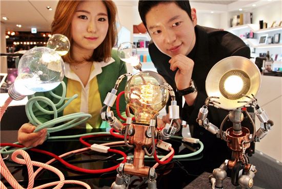 [아시아경제 장인서 기자]13일 갤러리아명품관에서 모델들이 새롭게 출시된 로봇조명을 바라보고 있다. 갤러리아명품관 웨스트5층에 위치한 패션 IT, 소품 편집매장인 게이즈샵(GAZE SHOP)에서는 지난 11일 로봇조명을 비롯한 이색 조명 기기들을 선보였다.로봇조명은 배관에 쓰이는 동, 철, 알루미늄 등으로 LED 전구와 함께 수작업으로 제작돼 하루에 8개만 생산하는 한정판 상품이다. 갤러리아 관계자는 "로봇조명은 몸체를 자유자재로 움직일 수 있어 다양한 포즈를 통해 재미와 함께 색다른 조명 인테리어를 연출할 수 있다"고 설명했다.(가격은 좌측부터 18만원, 18만원, 30만원)장인서 기자 en1302@asiae.co.kr<ⓒ세계를 보는 창 경제를 보는 눈, 아시아경제(www.asiae.co.kr) 무단전재 배포금지>
