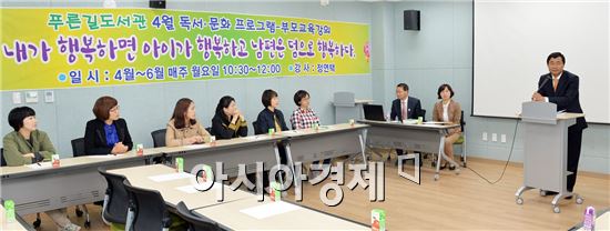 광주 남구(구청장 최영호)는 14일 오전 푸른길도서관에서 제50회 도서관주간을 맞아 학부모 및 일반인 25명을 대상으로 ‘넝쿨째 들어온 행복’이란 주제로 부모교육 개강식을 가졌다. 사진제공=광주시 남구<br />