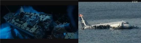 ▲진도 여객선 침몰과 반대되는 사례.(사진 왼쪽: '타이타닉' 영화 스틸컷, 오른쪽: YTN 뉴스 보도 캡처)