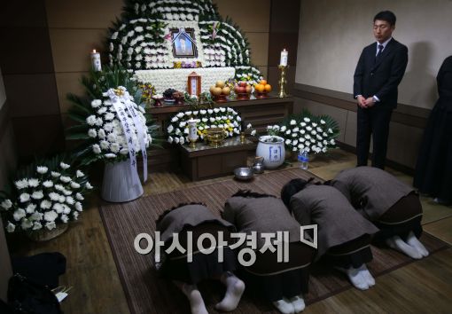[안산=아시아경제 최우창 기자] 전남 진도 앞바다에서 여객선 세월호가 침몰한 지 사흘째를 맞고 있는 18일 사고로 목숨을 잃은 경기 안산 단원고 이다운 학생의 빈소가 마련된 안산 한도병원장례식장에서 친구들이 조문하고 있다.최우창 기자 smicer@asiae.co.kr<ⓒ세계를 보는 창 경제를 보는 눈, 아시아경제(www.asiae.co.kr) 무단전재 배포금지>