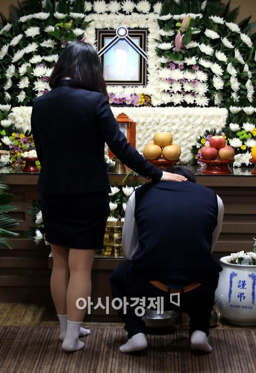 [안산=아시아경제 최우창 기자]전남 진도 앞바다에서 여객선 세월호가 침몰한 지 사흘째를 맞고 있는 18일 사고로 목숨을 잃은 경기 안산 단원고 이다운 학생의 빈소가 마련된 안산 한도병원장례식장에서 친구들이 조문하고 있다.최우창 기자 smicer@asiae.co.kr<ⓒ세계를 보는 창 경제를 보는 눈, 아시아경제(www.asiae.co.kr) 무단전재 배포금지>