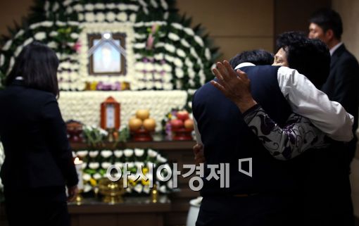 [안산=아시아경제 최우창 기자]전남 진도 앞바다에서 여객선 세월호가 침몰한 지 사흘째를 맞고 있는 18일 사고로 목숨을 잃은 경기 안산 단원고 이다운 학생의 빈소가 마련된 안산 한도병원장례식장에서 친구들이 조문하고 있다.최우창 기자 smicer@asiae.co.kr<ⓒ세계를 보는 창 경제를 보는 눈, 아시아경제(www.asiae.co.kr) 무단전재 배포금지>