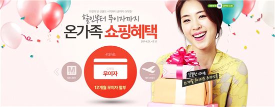 [아시아경제 장인서 기자] 온라인쇼핑사이트 G마켓(www.gmarket.co.kr)이 5월 가정의 달을 앞두고 신용카드 무이자 할부 혜택 등 다양한 프로모션을 진행한다.G마켓은 21일부터 다음달 11일까지 장바구니 합산 금액 20만원 이상 결제 시 12개월 무이자할부 서비스를 제공한다고 20일 밝혔다. 신한, 현대, KB국민, 씨티 총 4개 신용카드가 대상이며 단일 제품이 아니어도 장바구니 합산금액이 20만원을 넘으면 무이자 할부를 받을 수 있다. 21일~22일에는 현대카드 M포인트 50% 차감 할인 프로모션을 진행, 결제 건당 최대 3만 포인트까지 사용 가능하며 23일부터 6월30일까지는 G마켓 내 전체 카테고리에서 OK 캐쉬백 100% 사용 프로모션도 진행한다. 아울러 '홍콩 디즈니랜드 입장권'과 '제주도 왕복 항공권'을 증정하는 경품 행사를 진행하고 '카네이션·꽃선물' 특가전도 마련했다.강선화 G마켓 마케팅실장은 "5월은 어린이날, 어버이날 등 각종 기념일로 인해 지출이 많아지는 시기인 만큼 장기 무이자 할부 혜택에 대해 고객들이 큰 관심을 가질 것으로 기대한다"고 말했다. 장인서 기자 en1302@asiae.co.kr<ⓒ세계를 보는 창 경제를 보는 눈, 아시아경제(www.asiae.co.kr) 무단전재 배포금지>