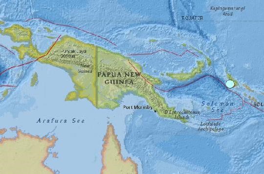 ▲쓰나미 주의보 발령, 파푸아뉴기니와 솔로몬제도 대피 명령.(사진: USGS 홈페이지)