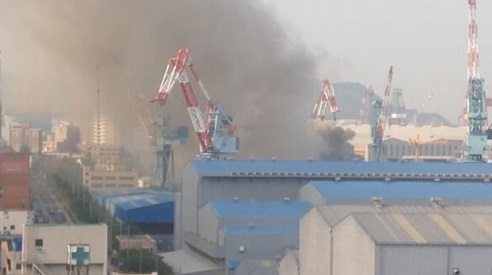 현대중공업 울산조선소 화재 [사진=아이디 Y*****님 트위터 캡쳐]