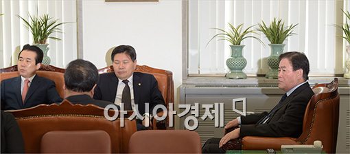 [아시아경제 윤동주 기자] 최경환 새누리당 원내대표가 22일 서울 여의도 국회에서 열린 비공개 원내대책회의에서 회의 시작 전 참석자들과 의견을 교환 하고 있다.윤동주 기자 doso7@asiae.co.kr<ⓒ세계를 보는 창 경제를 보는 눈, 아시아경제(www.asiae.co.kr) 무단전재 배포금지>