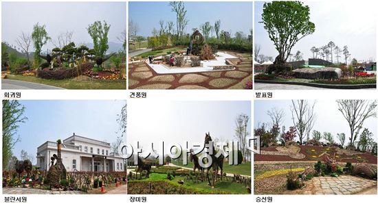 순천시는 자연이 전하는 메시지와 그 속의 조화로움이라는 이야기를 가지고 6가지 테마와 색깔을 가진 화원을 조성했다