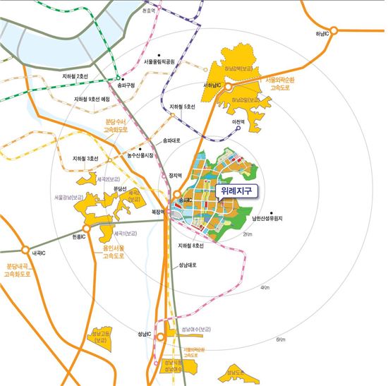 주거전용 단독주택용지 103필지를 공급할 계획인 위례신도시 위치도.