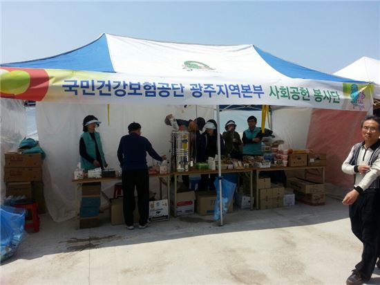 [국민건강보험공단 광주전남지사는 지난 16일 세월호 침몰 소식이 전해지자 곧장 팽목항에 달려가 실종자 가족들과 자원봉사자들에게 식사와 생필품을 지원해 왔다.]