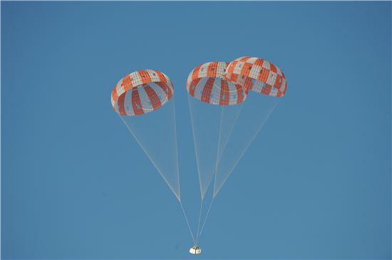 ▲'오리온' 우주선의 비상시 낙하산을 통한 탈출에 대한 실험이 진행됐다.[사진제공=NASA]