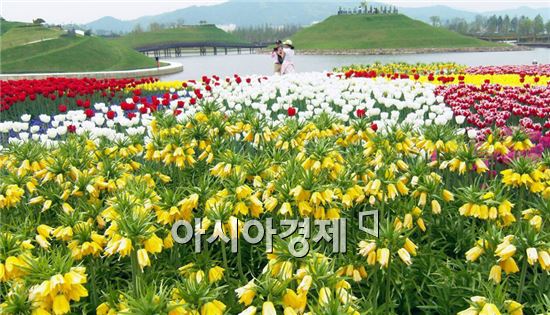 순천만정원에 듈립 등 각종 꽃들이 화사하게 폈다.