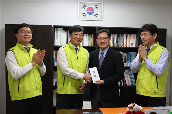 ▲농협은행 리스크관리본부 소속 임직원들은 지난 29일 서대문종합사회 복지관을 방문해 성금을 전달했다.