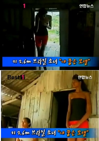 ▲키 203cm의 브라질 소녀 엘리자니.(사진: 연합뉴스 '위크&월드' 방송 캡처)