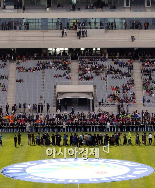 [인천=아시아경제 최우창 기자]7일 인천시 서구 연희동 인천 아시아드 주경기장에서 열린 준공 기념행사에서 송영길 인천시장을 비롯한 관계자들과 시민 등 2014명이 테이프 커팅식 하고 있다.인천시는 범국민적 관심과 참여를 유도하기 위해 테이프커팅에 아시안게임 개최 연도를 상징하는 2014명의 시민과 내·외빈을 초청했다. 최우창 기자 smicer@asiae.co.kr<ⓒ세계를 보는 창 경제를 보는 눈, 아시아경제(www.asiae.co.kr) 무단전재 배포금지>