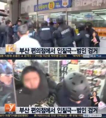 ▲20대 남성 부산 대학가 근처 편의점에서 여종업원 상대로 인질극. (출처: 뉴스Y 방송화면 캡처)