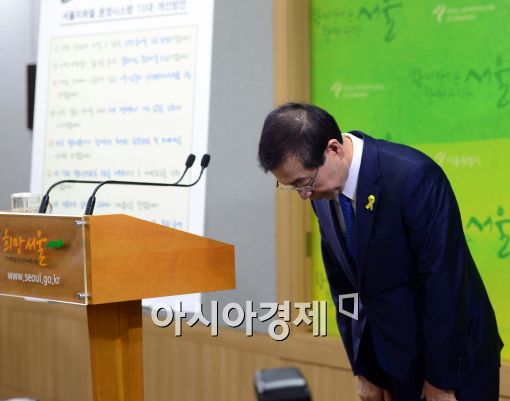 [아시아경제 최우창 기자]9일 서울 중구 서울시청 브리핑실에서 열린 ‘서울시 지하철 운영시스템 10대 개선 방안’ 발표 기자설명회에 참석한 박원순 서울시장이 2호선 상왕십리역 열차 추돌 사고와 관련해 고개 숙여 사과하고 있다.최우창 기자 smicer@asiae.co.kr<ⓒ세계를 보는 창 경제를 보는 눈, 아시아경제(www.asiae.co.kr) 무단전재 배포금지>