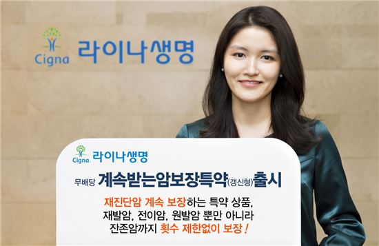 [아시아경제 김대섭 기자] 라이나생명은 암 최초진단 이후 재진단시마다 횟수 제한없이 계속 보장하는 무배당 계속받는암보장특약(갱신형)을 출시했다고 12일 밝혔다.이 상품은 라이나생명의 암보험 주계약에 특약으로 가입할 수 있다. 원발암, 전이암, 재발암 뿐만 아니라 잔존암까지 횟수 제한없이 계속 보장한다. 암이 완치되지 않고 남아 있으면 재진단암 보험금을 최소 2년주기로 반복적으로 보장하는 것이 주요 특징이며 연령 차등없이 최대 3000만원 한도로 보장한다. 또 암 진단이 확정되거나 50% 이상 장해가 발생했을 시에는 주계약 보험료를 비롯한 특약의 차회 이후의 보험료도 납입이 면제된다. 단, 납입면제사유가 발생해 보험기간 동안 보험료 납입이 면제되더라도 해당 보험기간의 만기가 도래해 새롭게 자동갱신된 경우에는 갱신전 보험사고로 인한 보험료 납입면제를 적용하지 않고 보험료를 계속 납입해야 한다. 이 상품은 15세부터 60세까지 가입이 가능한 10년 만기 암보험 특약 상품이다. 갱신을 통해 최대 100세까지 보장 받을 수 있다. 암보험 주계약에 특약으로 추가할 경우 특약 보험료는 40세 남자, 보장금액 1000만원 기준으로 월 1850원 수준이다.홍봉성 라이나생명 사장은 "일단 암이 발생하고 나면 암보험의 재가입이 어렵다는 점에서 본 특약을 통해 암 유병자들의 재진단암에 대한 보장공백을 해소할 수 있게 했다"며 "생명보험사 최초로 출시한 이번 특약 상품을 통해 다시 재발할지 모르는 암에 대해서도 폭넓고 지속적으로 보장할 수 있게 됐다"고 말했다. 김대섭 기자 joas11@asiae.co.kr<ⓒ세계를 보는 창 경제를 보는 눈, 아시아경제(www.asiae.co.kr) 무단전재 배포금지>