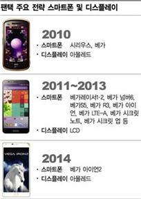 팬택 주요 전략폰 및 디스플레이