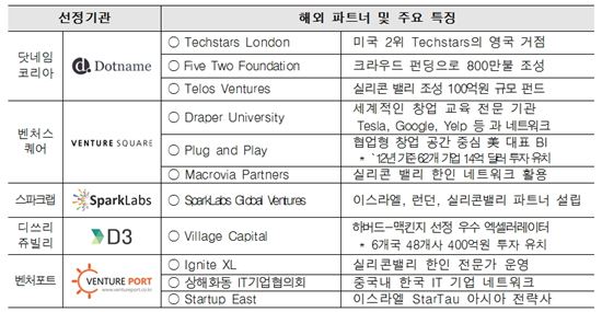 ▲'2014년 글로벌 엑셀러레이터 육성 사업' 선정기관 및 해외 파트너 개요