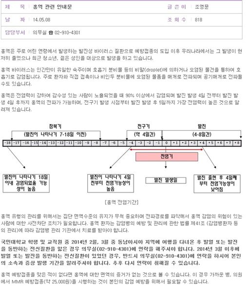 ▲국민대 홍역 관련 안내문(사진: 국민대 공식 홈페이지)