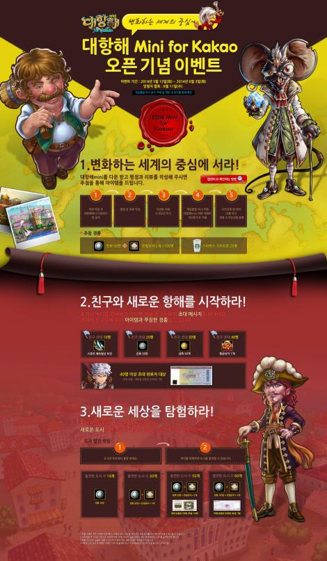 [아시아경제 정준영 기자]라이브플렉스의 인기 모바일게임 '대항해미니'를 카카오 게임하기에서도 즐길 수 있게 됐다. 13일 라이브플렉스는 모바일게임 '대항해미니 for Kakao'를 카카오 게임하기에 출시하고 다음달 3일까지 오픈 기념 이벤트를 진행한다고 밝혔다. ‘대항해미니 for Kakao’를 다운받고 평점과 리뷰를 작성하거나 친구들에게 카카오톡으로 초대메시지를 보내면 추첨을 통해 아이템 또는 기프티콘, 백화점상품권 등 다양한 경품을 증정할 예정이다. 또 이용자가 게임 중 발견한 도시 수에 따라 게임아이템과 여행상품권도 받을 수 있다. 항해 경영 시뮬레이션 '대항해미니'는 중세 대항해 시대를 배경으로 신항로를 개척하며 자신의 함대와 도시를 성장시켜 나가는 모바일 게임이다. 2012년 서비스 시작 후 티스토어 게임다운로드 1위를 기록하는 등 꾸준한 인기를 얻고 있다. 라이브플렉스는 “조작이 간편하고 사용자 간의 무역활동 및 해상 전투 등 다양한 재미요소를 갖추고 있다”고 설명했다.앞서 지난해 10월 아시아 여러 도시, 독도 수호 퀘스트를 추가하고 한국의 대표 선박인 거북선과 판옥선을 넣는 등 아시아 지역 콘텐츠를 중심으로 한 대규모 업데이트를 진행한 바 있다. 이번 ‘대항해미니 for Kakao’는 친구들끼리 선물하기, 방명록남기기, 카카오스토리 포스팅 등의 소셜기능을 지원한다. 도시통치 투자시스템, 선박제조 시 랜덤으로 얻을 수 있는 12종의 선박스킬과 부관, 보물, 선박, 도시, 상품 등의 도감 시스템도 추가됐다. 라이브플렉스 관계자는 "지난 2012년 '대항해미니'가 국내 자체 플랫폼으로 출시된 이래 꾸준히 다운로드 상위권에 오르며 인기를 끌고 있는 만큼 이번 카카오 게임하기 버전도 유저들의 많은 관심과 호응이 있을 것으로 기대된다"며 "특히 30~40대 유저들에게는 어린 시절 즐겼던 해양 어드벤처 게임의 추억을 되살려 줄 수 있을 것"이라고 말했다.