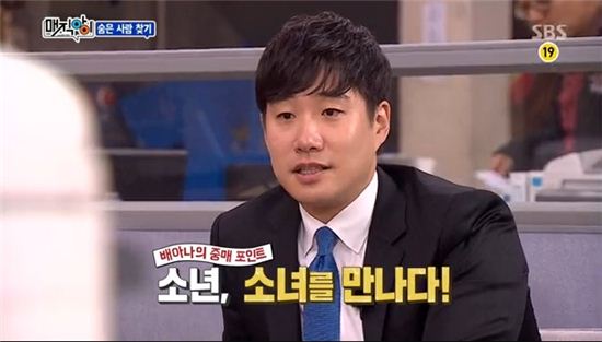 [아시아경제 온라인이슈팀] '매직아이' 배성재, 박지성·김민지 중매 "순수한 소년과 소녀의 만남"배성재 SBS 아나운서가 박지성 선수와 김민지 전 아나운서의 첫 만남을 언급했다.13일 밤 방송된 SBS 예능프로그램 '매직아이'에서 배성재 아나운서는 박지성 선수와 김민지 전 아나운서의 만남을 주선한 계기를 밝혔다. 배성재 아나운서는 "박지성 선수와 김민지 아나운서가 잘 맞을 것 같았다"라며 운을 뗐다. 그는 "박지성 선수가 오랫동안 싱글로 있다보니 헛소문들이 있다"며 "박지성 선수 아버지가 '빨리 장가보내야겠다'는 이야기를 꺼내서 '괜찮은 친구가 하나 있다'고 소개하게 된 것이다"라고 말했다. 배성재 아나운서는 김민지 전 아나운서를 소개하게 된 계기에 대해 "그런데 그 직전에 마침 김민지 아나운서가 박지성 선수 기사를 보고 있었다"며 "김민지 아나운서는 학창시절부터 박지성 선수가 귀여워서 좋았다고 하더라"고 말했다. 배성재 아나운서는 "억대 연봉의 박지성과 엄친딸 김민지로 알고들 있지만 둘 다 순수한 소년 소녀 같은 사람들"이라고 두 사람을 평가했다.'매직아이' 배성재 아나운서의 박지성-김민지 주선 언급에 네티즌은 "매직아이 박지성 김민지, 그렇게 된 거였구나" "매직아이 박지성 김민지, 잘 어울려요" "매직아이 박지성 김민지, 순수하구나" 등의 반응을 보였다.온라인이슈팀 <ⓒ세계를 보는 창 경제를 보는 눈, 아시아경제(www.asiae.co.kr) 무단전재 배포금지>