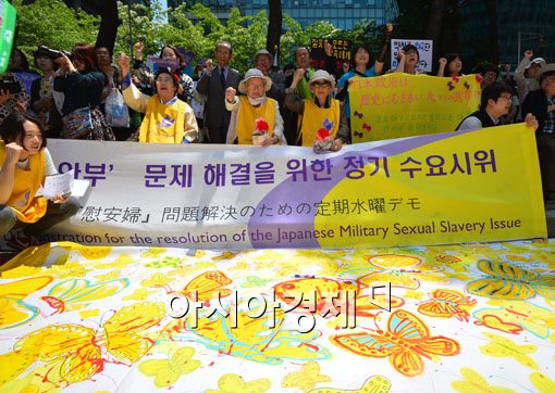 [아시아경제 백소아 기자] 14일 서울 종로구 주한일본대사관 앞에서 열린 제1126차 일본군 위안부 문제 해결을 위한 정기 수요집회에서 노란 나비들이 그려진 대형그림이 놓여있다.백소아 기자 sharp2046@asiae.co.kr<ⓒ세계를 보는 창 경제를 보는 눈, 아시아경제(www.asiae.co.kr) 무단전재 배포금지>