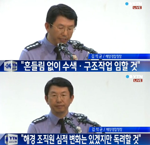 ▲해양경찰청장이 박근혜 대통령의 '해경 해체' 대국민담화를 수용하겠다는 뜻을 밝혔다. (사진: YTN 보도화면 캡처)