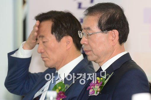 [아시아경제 백소아 기자] 19일 서울 종로구 서울특별시선거관리위원회에서 열린 매니페스토 정책선거 실천협약식에서 박원순 새정치민주연합 서울시장 후보(오른쪽)와 정몽준 새누리당 서울시장 후보(왼쪽)가 참석해 나란히 앉아있다. 백소아 기자 sharp2046@asiae.co.kr<ⓒ세계를 보는 창 경제를 보는 눈, 아시아경제(www.asiae.co.kr) 무단전재 배포금지>