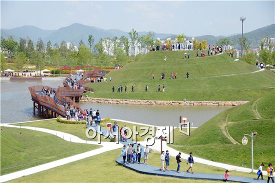 "개장 한 달 만에 60만여 명 찾아 지역경제 활성화 견인 "[아시아경제 노해섭 기자]도시가 아닙니다. 정원입니다. 순천!인구 28만 명으로 남해안권의 작은 도시 순천시가 생태정원인 순천만정원을 새롭게 정비, 지난 4월 20일 영구 개장한지 벌써 한 달이 됐다.특히, 세월호 참사로 전 국민들의 심리적 트라우마가 극심한 상황에서 개장 한 달 만에 관람객 60만 명 가량이 방문하면서 침체된 지역경제를 견인하는 역할을 톡톡히 해 내고 있다.순천시는 지난 한달 동안 전체 1일평균 2만 여명, 주말평균 3만 8,000여명, 평일 평균 9,000여명이 방문했고, 1일 최대 입장객은 지난 5월 5일 어린이날 103,970명이 방문했다고 밝혔다. 운영인력은 1일 86명으로 지난 정원박람회 504명에 비해 적은 숫자지만 박람회 유경험자 중심으로 소수 정예화 했고, 수익사업은 입장료 수입 등 17억 5천만 원의 수입을 거뒀다. 시는 온 국민에 슬픔을 안겨준 ‘세월호 참사’가 발생해 개막행사를 전면 취소하고, 일체의 행사를 중단한 상태에서 이처럼 많은 관람객이 찾은 것은 가족 간, 연인 간, 세대 간의 소통과 힐링 명소로 순천만정원의 가치가 입증됐다고 설명했다.또, 세월호 아픔으로 인한 정신적 치유와 어린이와 청소년의 생태체험학습 공간으로 명소화가 됐고, 동천과 봉화산 둘레길, 순천만, 낙안읍성, 송광사, 선암사 등 자연정원과 역사정원, 문화정원을 한곳에서 볼 수 있는 도시 전체가 하나의 정원이 되는 새로운 상품을 직간접적으로 느껴보기 위해 전국 곳곳은 물론 중국과 일본 등 전 세계에서도 관광객의 발길이 끊이지 않는 것으로 분석했다.순천만정원을 찾은 많은 관광객들은 순천만~순천만정원~동천~봉화산둘레길을 거닐며 상당수가 숙박을 하고 있어 음식·숙박업소 등 연관업소들도 특수를 누리고 있다.시는 개장에 앞서 관람객이 꿈의다리 앞 횡단보도를 위험하게 건너는 불편을 없애기 위해 강변도로를 입체화했고, 철쭉정원에서 남문광장 쪽으로 내려오는 210m의 구름다리 데크길과 임산부, 장애인 등 사회적 약자의 편의를 위해 동문주차장도 확장했다. 특히, 팽나무, 느티나무 등 자연적인 그늘막 수종 등 나무도 4만 8,000여주를 늘려 심었다.이와 함께 순천만과 순천만정원을 연결하는 길이 4.6㎞에 국내 처음으로 전기를 동력으로 하는 소형경전철 스카이규브 40대를 본격 운행하면서 관람객의 흥미를 돋우고 있다.차별성 있는 볼거리를 위해 봄꽃을 주제로 3만 5,000㎡의 유채꽃길, 꽃양귀비길 등 맞춤형 테마를 개발했고, 어린이부터 노인까지 즐길 수 있는 체험프로그램 22종을 신설해서 관람객들에게 풍성한 볼거리와 체험거리를 제공했다. 도시숲 이색자전거, 나눔숲 꽃마차, 함께 정원 만들기, 사육사와 함께하는 동물퀴즈 등 가족단위 맞춤형 프로그램도 신설했다. 여름철에는 동천 수상자전거, 물버섯 물놀이, 물총놀이 등 물을 테마로 체험꺼리를 준비하고, 친환경 화분만들기, 정원영화제, 동물 및 곤충 전시회 등 생태체험 프로그램을 늘려 관람객들이 더위를 쫓으면서 즐기도록 할 계획이다.또 야간개장과 함께 썸머가든페스티벌을 개최해 시민들과 관람객의 무더위를 식혀 줄 계획이다.시 관계자는 "새로운 순천만정원 개장은 지난 정원박람회와는 차별화된 조용하고 아늑한 분위기 속에서 가족과 함께 진정한 정원문화와 힐링의 진수를 느껴 볼 수 있었다"며 "세계적인 생태관광지이자 웰빙의 메카로 확고한 기반을 구축하는 계기를 마련했다" 고 자평했다. 노해섭 기자 nogary@<ⓒ세계를 보는 창 경제를 보는 눈, 아시아경제(www.asiae.co.kr) 무단전재 배포금지>