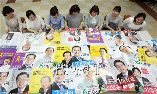 6.4지방선거 후보자 벽보 첨부 준비 한창<br /> <br /> 오는 6월 4일 실시하는 제6회 전국 동시 지방선거를 보름여 앞두고 21일 광주 북구 일곡동 주민센터(동장 김옥중) 직원들이 회의실에서 후보자별 벽보 첨부를 위한 준비 작업을 하고 있다. 사진제공=광주시 북구<br />
