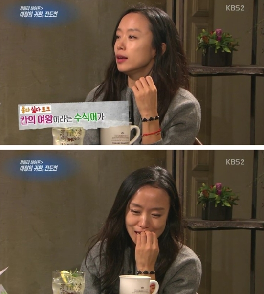 ▲칸 영화제 참가한 전도연이 차고 나온 하트무늬 팔찌가 화제다. (사진: KBS2 '연예가 중계' 방송화면 캡처)