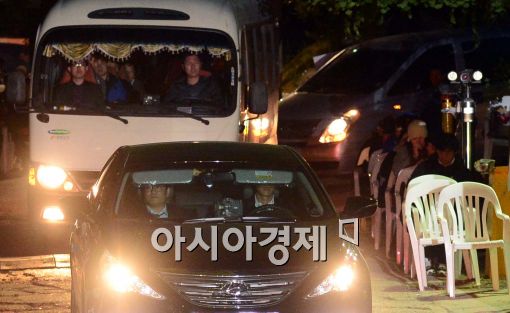 [안성=아시아경제 최우창 기자]검찰이 '세월호' 실소유주인 유병언(73) 전 세모그룹 회장과 유 전 회장의 장남 대균(44)씨를 검거하기 위해 기독교복음침례회(일명 구원파)의 총본산인 금수원에 진입한 21일 검찰 차량이 금수원에서 빠져나오고 있다.최우창 기자 smicer@asiae.co.kr<ⓒ세계를 보는 창 경제를 보는 눈, 아시아경제(www.asiae.co.kr) 무단전재 배포금지>