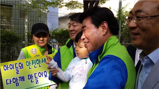 [수원=이영규 기자]김진표(67) 새정치민주연합 경기도지사 후보는 '6·4 지방선거'의 선거운동이 공식 시작된 22일 첫 일정으로 수원 영통 신영초등학교 '어린이 교통안전 캠페인' 행사에 참여하는 것으로 13일간의 대장정에 돌입했다. 이날 행사는 안철수 새정치민주연합 공동대표와 수원남부경찰서 어머니폴리스 마미캅 회원 50여명도 함께 했다. 김 후보는 이날 오전 7시40분쯤 수원 영통 신영초등학교에 도착, 미리 대기하고 있던 안혜영 경기도의원 후보, 이기우 전 국회의원 등과 악수를 나눴다 .이어 5분 뒤 도착한 안 대표와 반갑게 인사한 뒤 학교 후문을 중심으로 양쪽으로 어깨띠를 한 채 줄지어 선 마미캅 회원들과 인사를 나눴다. 김 후보는 특히 엄마 손을 잡고 따라 나온 어린이들에게 일일이 이름을 물어본 뒤 '공부 열심히 하라'며 격려를 잊지 않았다. 김 후부는 마미캅 회원들과 인사를 나눈 뒤 이날 오전 8시쯤 학교 후문 횡단보도에서 안 대표와 함께 '내 자녀 내가 지킨다'는 글이 씌인 깃발을 들고, 아이들의 안전한 등굣길을 함께 했다. 김 후보는 이날 8시30분 수원 인계동 선거캠프에서 예정된 경기도지사 출정식 일정을 고려해 8시19분쯤 현장을 떠났다.김 후보는 기자와 만나 "이번 선거는 세월호 참사 이후 치러지는 첫 선거로 아이들을 지키지 못한 죄인된 심정으로 모든 국민들이 세월호 참사 이전과 이후 대한민국은 달라져야 한다고 한다"며 "그래서 저는 오늘 첫 선거운동을 하기 전 새벽에 안산 합동분향소를 집사람과 함께 참배하고, (도민 안전을 최우선으로 생각하겠다고)다짐했다"고 말했다.그는 첫 일정을 갑자기 바꾼 사연도 소개했다.김 후보는 "통상 선거를 시작할 때는 역이나 터미널 등 사람들이 많은 곳을 찾아가 유권자를 만나는 게 일반적이지만, 오늘은 아이를 만나자, 그리고 아이들이 안전하게 등교하는 것 지켜보고 안내하는 것을 하는 게 좋겠다고 생각해 첫 행사를 여기서 하게 됐다"고 덧붙였다.이영규 기자 fortune@asiae.co.kr<ⓒ세계를 보는 창 경제를 보는 눈, 아시아경제(www.asiae.co.kr) 무단전재 배포금지>이영규 기자 fortune@asiae.co.kr<ⓒ아시아 대표 석간 '아시아경제' (www.newsva.co.kr) 무단전재 배포금지>