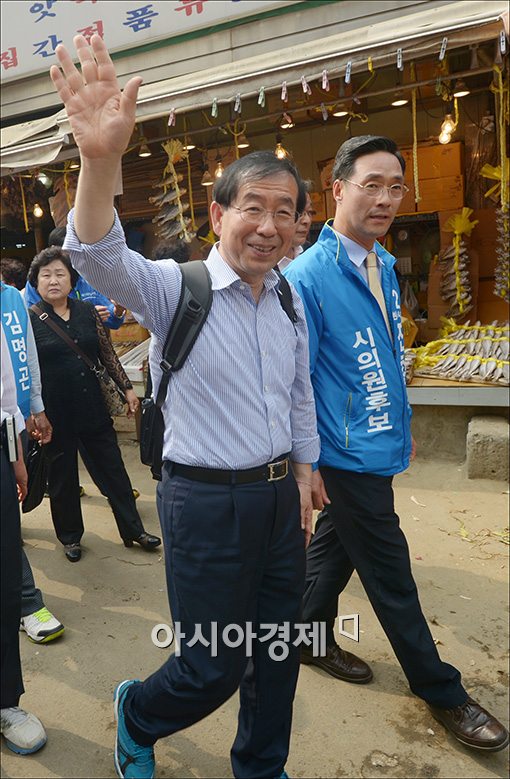 [아시아경제 윤동주 기자] 박원순 새정치민주연합 서울시장 후보가 23일 서울 동대문구 경동시장을 찾아 상인들과 인사를 나누고 있다.윤동주 기자 doso7@asiae.co.kr<ⓒ세계를 보는 창 경제를 보는 눈, 아시아경제(www.asiae.co.kr) 무단전재 배포금지>