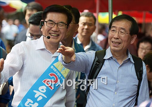 [아시아경제 윤동주 기자] 박원순 새정치민주연합 서울시장 후보가 23일 서울 동대문구 경동시장을 찾아 상인들과 인사를 나누고 있다.윤동주 기자 doso7@asiae.co.kr<ⓒ세계를 보는 창 경제를 보는 눈, 아시아경제(www.asiae.co.kr) 무단전재 배포금지>