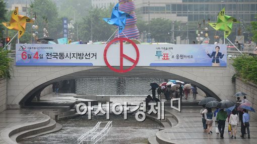[아시아경제 백소아 기자] 6.4 지방선거를 열흘 앞둔 25일 서울 청계천 광통교 부근에 6.4 지방선거를 홍보하는 조형물들이 달려있다.백소아 기자 sharp2046@asiae.co.kr<ⓒ세계를 보는 창 경제를 보는 눈, 아시아경제(www.asiae.co.kr) 무단전재 배포금지>