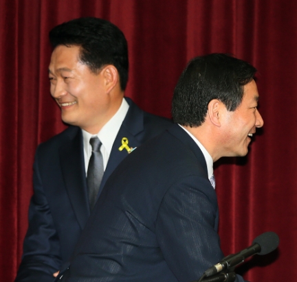 송영길 새정치민주연합 인천시장 후보(왼쪽)과 유정복 새누리당 후보(오른쪽).