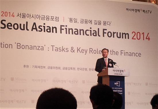 [아시아경제 고형광 기자] 정찬우 금융위원회 부위원장은 26일 "북한경제 재건을 위한 다양한 금융지원 방안 마련이 통일 한국의 성패를 가를 핵심요소"라고 말했다.정 부위원장은 이날 오전 서울 소공동 롯데호텔에서 열린 '2014 서울아시아금융포럼' 기조연설에서 "남북간 경제력 격차가 빠르게 축소되지 못한다면 이는 남북한 통합을 저해하는 심각한 요소로 작용할 수 있다"며 이같이 밝혔다.또한 그는 한반도 통일은 경제 체제가 다른 두 시스템이 하나로 통합되는 것인 만큼 금융시스템이 북한 경제에 얼마나 성공적으로 정착하느냐가 통일한국 성패의 시금석이 될 것이라고 강조했다.정 부원장은 특히 "통일 후 남북한의 갈등을 최소화하기 위해서는 남북한 경제력 격차를 조속히 줄이는 것이 중요한데 여기에 소요되는 자금을 조달하는 것이 바로 금융의 역할"이라며 "통일한국의 금융시스템을 어떻게 만들어 나갈지에 대한 비전과 전략을 세워나가야 한다"고 밝혔다.그는 이어 "이같은 비전과 전략을 구체화하기 위한 '통일금융 태스크포스(TF)'가 오늘 첫 회의를 시작으로 공식 출범한다"며 "통일과정에서 금융의 역할을 정립하고 이를 어떻게 준비해야 하는지를 구체적으로 논의하게 될 것"이라고 설명했다.정 부위원장은 북한경제의 재건을 위한 구체적 재원조달 방안으로 "조세수입 및 국채발행을 확대하고 지출항목을 구조조정하는 등 재정을 활용하는 방안과 기존의 남북협력기금 등 투자기금을 조성·활용하는 방안 등이 있다"고 제시했다. 또한 "국제기구 가입을 통해 양허성 자금 등 국제금융기구 자금을 유치하는 방안, 높은 장기 수익률을 기대하는 민간자본이 안심하고 투자할 수 있도록 뒷바침하는 방안 등도 생각해 볼 수 있다"고도 언급했다.정 부위원장은 북한의 시장경제에 적합한 금융 인프라를 설계하는 것도 매우 중요한 과제라고 역설했다. 그는 "현재 북한은 조선중앙은행이 통화의 발행과 자금의 배분을 독점하고 있어 제대로 작용되는 장단기 금융시장이나 상업은행 등이 전무한 상황"이라며 "경제 내 자금수급을 담당할 금융기관과 직접금융시장을 조기에 육성·안착시켜야 한다"고 말했다. 그는 이어 "보조를 맞춰 예금보험제도, 지급결제제도, 주식상장제도 등 시장경제에 걸맞은 금융 인프라를 만들어 나가야 할 것"이라고 덧붙였다.통일의 기본 여건인 환율 문제에 대해서도 언급했다. 정 부위원장은 "현재 북한의 환율제도는 공식환율과 시장환율이 괴리된 이중 환율구조"라며 "북한의 환율이 어떻게 결정되도록 해야 하는지에 대한 준비도 필요하다"고 지적했다. 이에 대한 방안으로 "남북 통합시 단일한 고정환율제를 유지해 남북의 화폐가 일정한 환율관계를 형성될 수 있도록 하면서 단기간 내 대외부채 정리, 물가불안 등의 문제를 해결하며 경제통합에 맞춰 환율제도를 단일화시켜 나갈 필요가 있다"고 밝혔다.끝으로 그는 "금융은 자금이 풍부한 곳에서 부족한 부분으로 흐르도록 매개 역할을 하는 것"이라며 "한반도 통일은 경제 체제가 다른 두 시스템이 하나로 통합되는 것인 만큼, 금융시스템이 북한 경제에 얼마나 성공적으로 정착하느냐가 통일한국 성패의 시금석이라 할 수 있다"고 강조했다.고형광 기자 kohk0101@asiae.co.kr<ⓒ세계를 보는 창 경제를 보는 눈, 아시아경제(www.asiae.co.kr) 무단전재 배포금지>