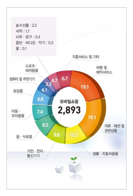 ▲상품군별 모바일쇼핑 거래액 구성비 (자료 : 통계청)