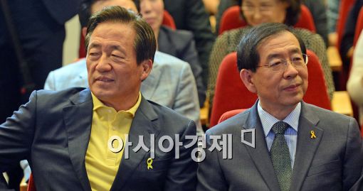 [아시아경제 최우창 기자]정몽준 새누리당(왼쪽), 박원순 새정치민주연합 서울시장 후보가 27일 서울 중구 우리은행 본점에서 열린 '서울특별시장 후보 초청 보육정책 토론회'에서 서로 다른 곳을 바라보고 있다. 최우창 기자 smicer@asiae.co.kr<ⓒ세계를 보는 창 경제를 보는 눈, 아시아경제(www.asiae.co.kr) 무단전재 배포금지>