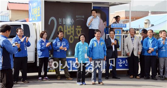 정동영 중앙선대위 공동위원장이 안병호 함평군수 지원유세를 펼쳐 “풍요로운 함평, 행복한 군민”을 기치로 선거승리를 다짐한 안병호 후보에게 전폭적인 지지를 보내달라고 호소했다.